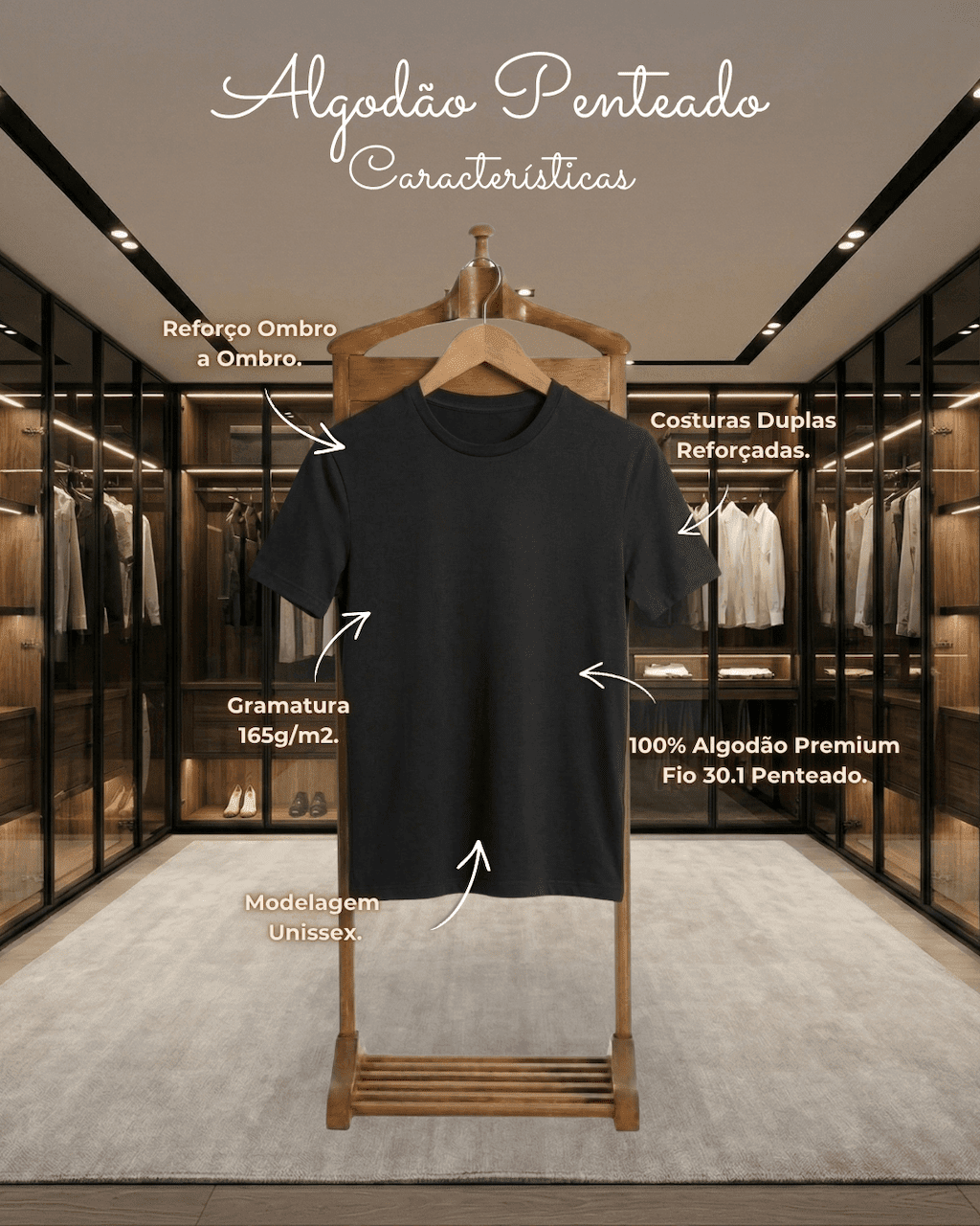 • Conforto para o ritmo de decisão: não basta uma mensagem criativa em um tecido comum. Nossa malha penteada oferece a leveza e o toque aveludado necessários para manter o bem-estar durante os dias de agenda lotada.